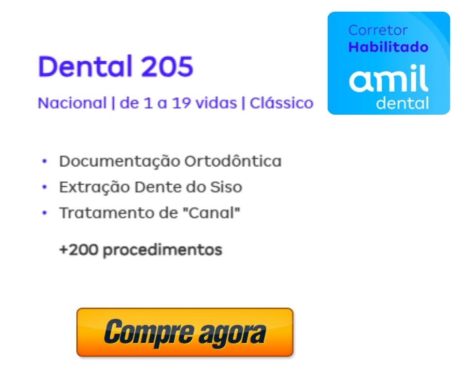 Este plano oferece atendimento em todo o Brasil com 205 procedimentos diferentes. Inclui desde consultas simples até documentação ortodôntica básica.